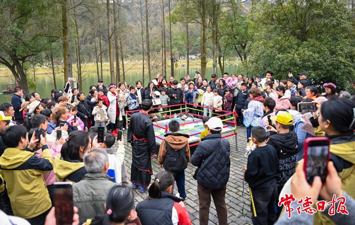 節(jié)日期間,為了給游客們展示“桃花源式待客之道”,景區(qū)不僅推出了優(yōu)惠門票,還舉辦了一系列豐富多彩的活動,給旅客們留下了一段難忘的回憶。舞獅、斗雞、湖湘戲韻讓大家目不暇接;投壺、射藝、銅錢擊鈴將古人的雅致樂趣完美重現(xiàn)……
