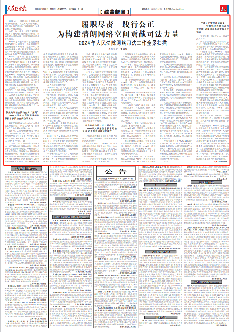 在網(wǎng)絡(luò)司法方面,《報(bào)告》顯示,“2024年,我國(guó)司法機(jī)關(guān)重點(diǎn)圍繞未成年人網(wǎng)絡(luò)保護(hù)、反電信網(wǎng)絡(luò)詐騙、網(wǎng)絡(luò)環(huán)境規(guī)范、新就業(yè)形態(tài)勞動(dòng)者權(quán)益維護(hù)等重點(diǎn)領(lǐng)域加強(qiáng)司法裁判規(guī)則建設(shè),依法保障網(wǎng)絡(luò)空間公平正義”。