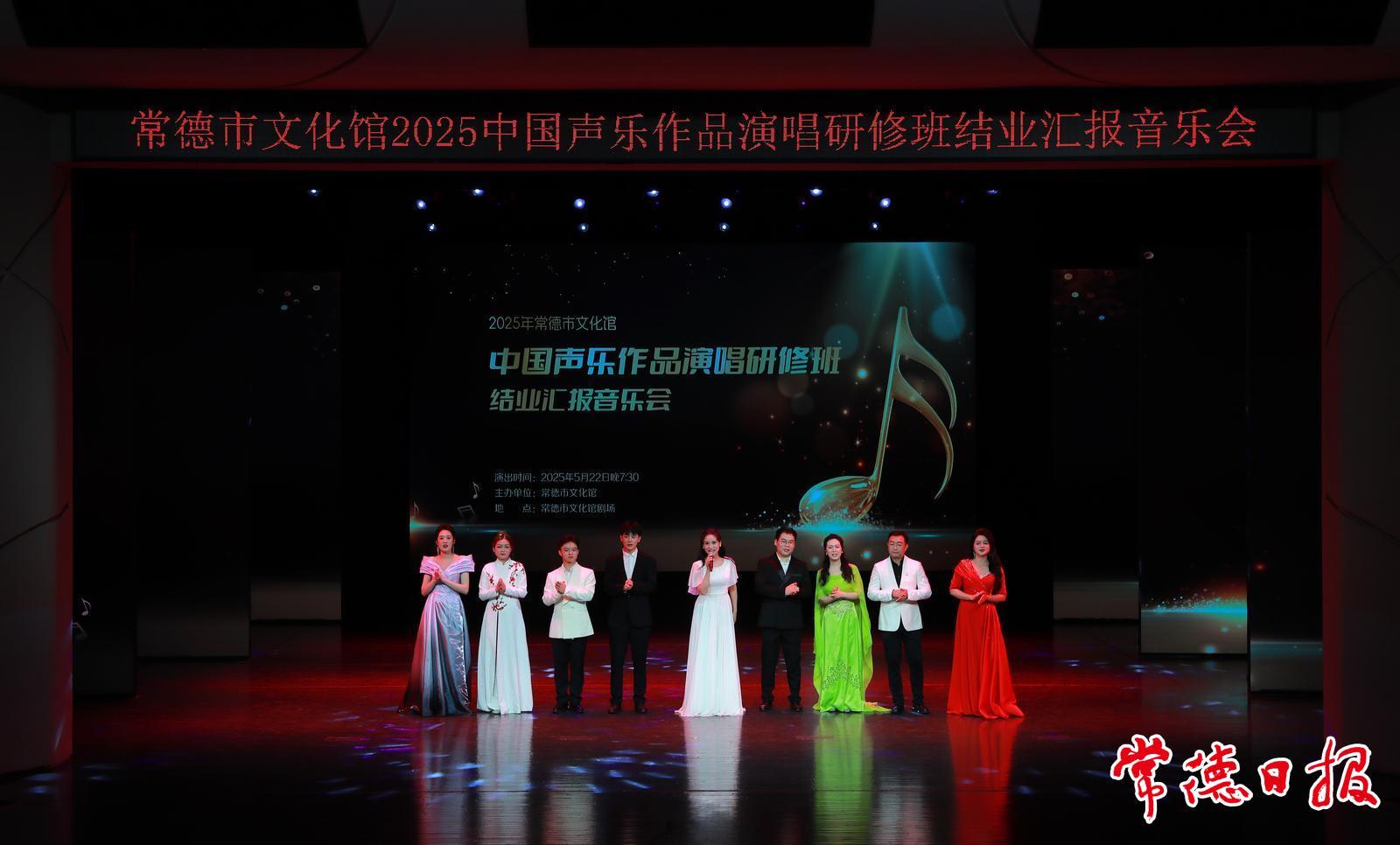 常德日報記者 馮順前 通訊員 劉禮德 張揚 文/圖 5月22日晚,常德市文化館劇場內座無虛席,常德市文化館2025中國聲樂作品演唱研修班結業匯報音樂會在此震撼上演。女高音歌唱家王相周攜手培訓班優秀學員,以精心籌備的演出展示教學成果,用動人歌聲和精湛技藝,為在場觀眾獻上了一場難忘的藝術之旅。