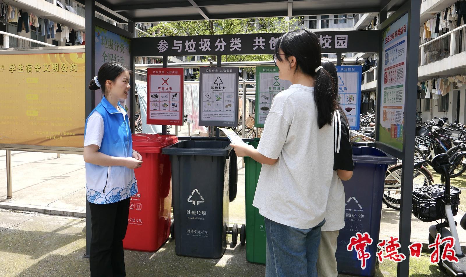 6月3日,記者在湖南文理學院見到羅文慧時,她正作為主講人為生態環保護鳥營學員們進行垃圾分類主題宣講。教室里,投影幕布上播放著垃圾分類相關知識,羅文慧指著屏幕上的分類圖表詳細講解。“可回收物、有害垃圾、廚余垃圾和其他垃圾要分別投放到對應顏色的垃圾桶。”她邊說邊展示著不同垃圾的正確投放方式,“特別是奶茶杯等塑料制品,一定要清洗干凈后投放到可回收物桶,避免殘留食物吸引鳥類啄食。”