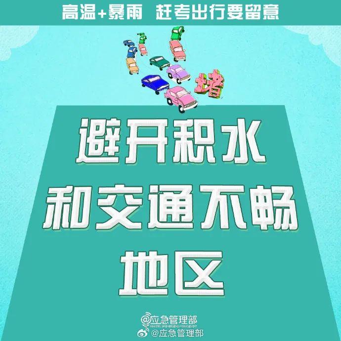 7日白天(高考),湘中以北小到中等陣雨或雷陣雨,常德、益陽北部、岳陽局地大雨,其他地區晴天到多云;最高氣溫34-36℃。