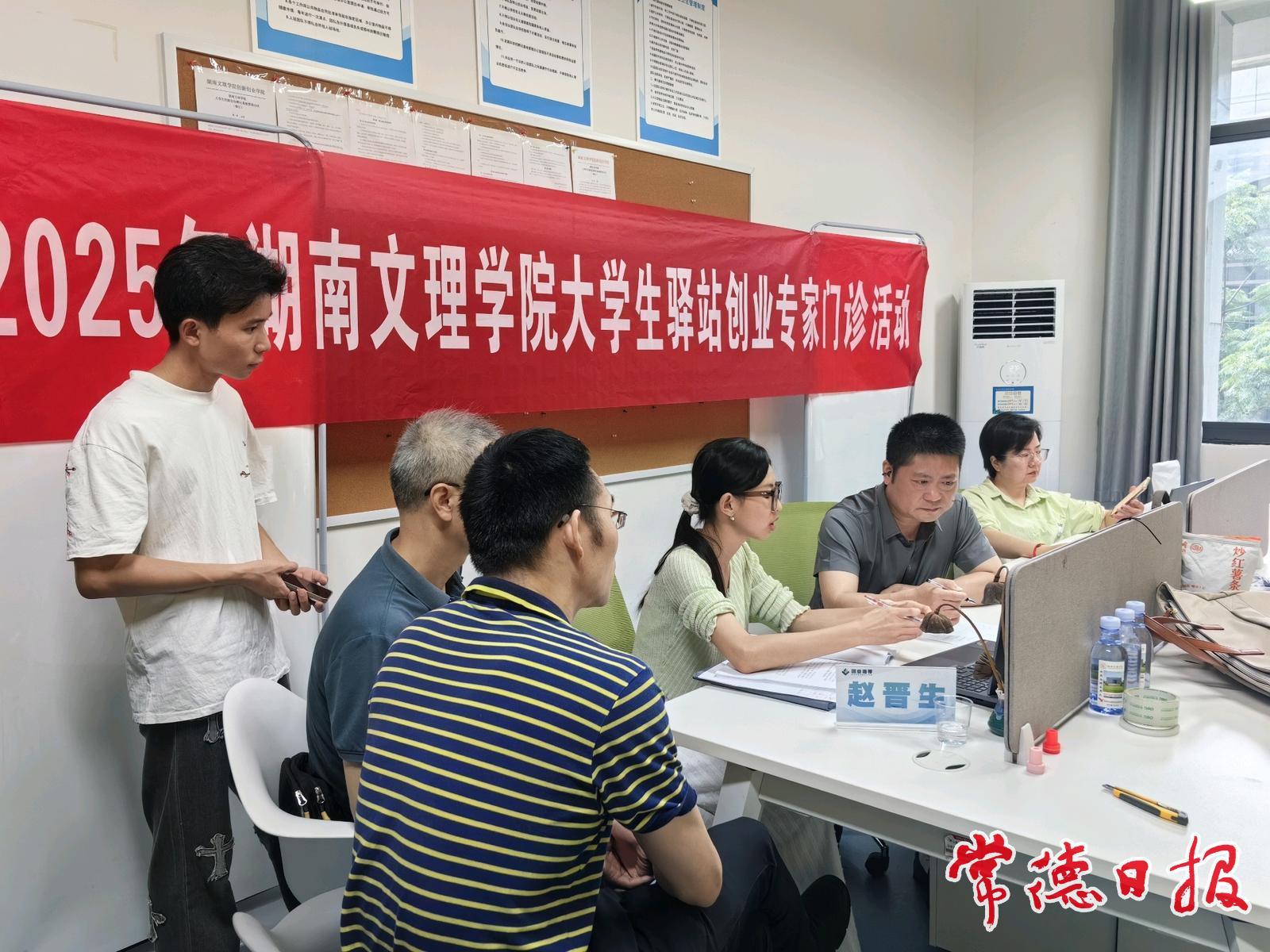 常德日報記者 姚懿容 通訊員 向婷婷 文/圖 6月21日,常德市大學生創業就業服務驛站“創業專家門診”活動在湖南文理學院舉行。來自常德市趙晉生創業指導工作室的兩名創業專家為5個大學生創業項目“把脈問診”,項目內容涉及電商、AI應用、農業機械、智能井蓋等領域。