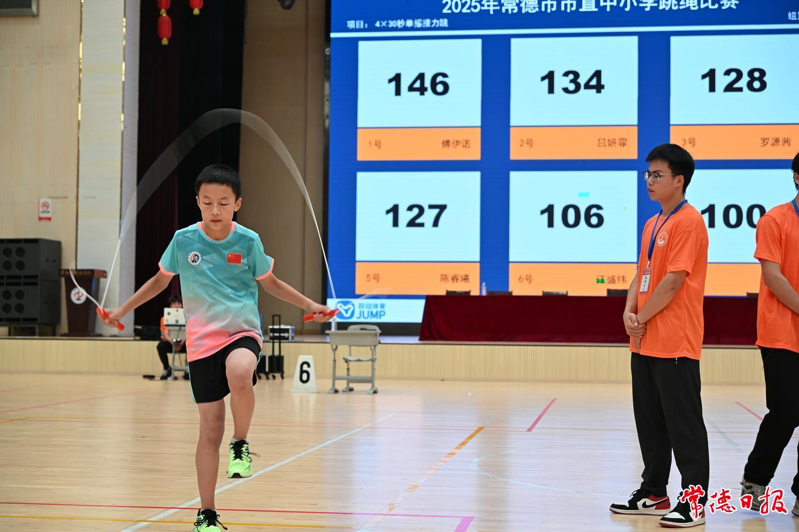 本次賽事由常德市教育局、常德市文化旅游廣電體育局聯(lián)合主辦,常德外國語學(xué)校承辦,共有市直14所中小學(xué)校的206名優(yōu)秀選手同場競技,他們以輕盈躍動的身姿展現(xiàn)新時代青少年的蓬勃朝氣,用一根根跳繩編織出活力四射的青春畫卷。