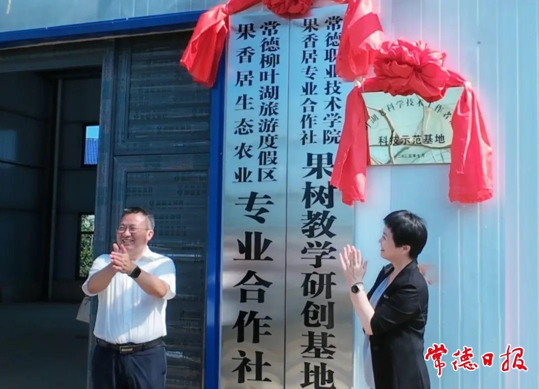 常德日報記者 肖芳影 通訊員 王木子 文/圖 7月3日,常德職業(yè)技術(shù)學(xué)院與果香居生態(tài)農(nóng)業(yè)科技農(nóng)民專業(yè)合作社在柳葉湖旅游管理區(qū)白鶴鎮(zhèn)白鶴山社區(qū)舉行基地項目簽約暨教學(xué)研創(chuàng)基地揭牌儀式。