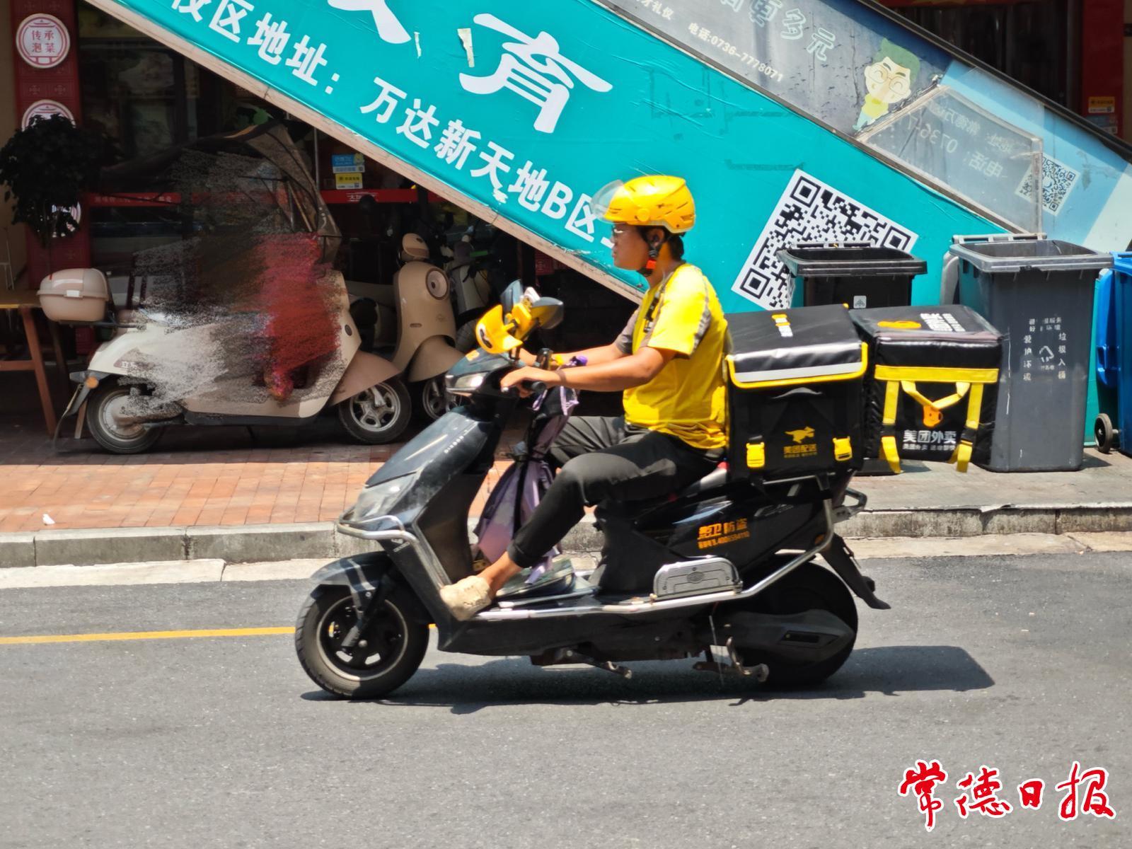7月7日,常德發布高溫橙色預警信號,當日最高氣溫升至37℃以上。商場玻璃幕墻反射著刺目的光,行人腳步匆匆,外賣平臺的提示音卻在騎手手機里此起彼伏。湖南文理學院附近一美團外賣站長王才智介紹:“7月以來,飲料、冰品冷飲外賣訂單同比增長超過20%?!彬T手的電動車輪碾過發燙的地磚,成了這座城市最“熱乎”的移動坐標。