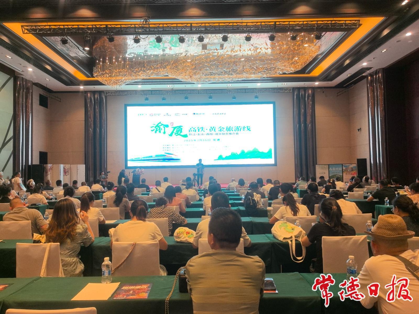 常德日報記者 黃云霞 文/圖 7月16日下午,渝廈高鐵黃金旅游線四地聯合推介會在常德舉行,黔江、彭水、酉陽、咸豐四地攜手,共同推出跨省精品旅游線路,為湘渝兩地游客帶來便捷豐富的文旅體驗。