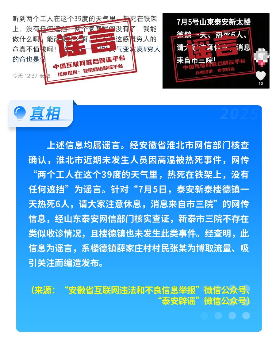 安徽淮北、山東泰安等地多人因高溫死亡?