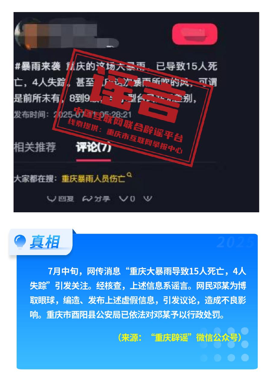 重慶大暴雨導(dǎo)致15人死亡、4人失蹤?