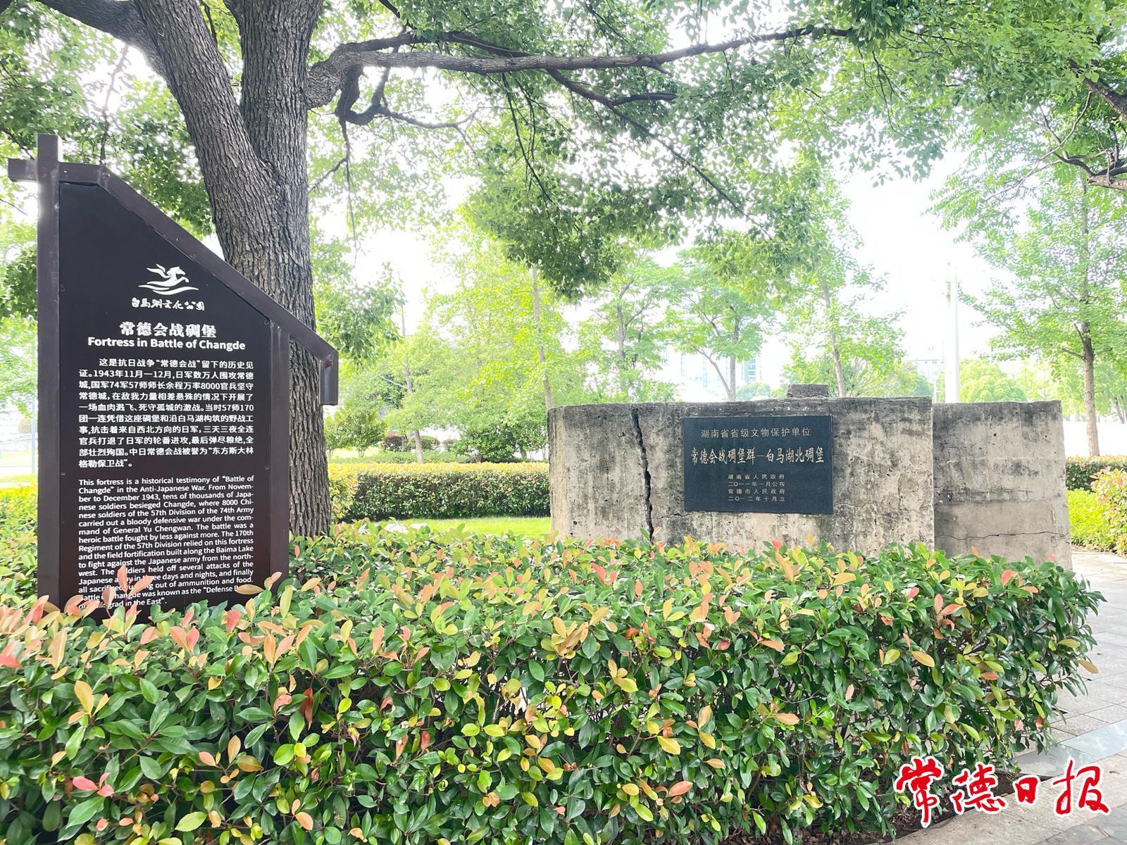 在湖南文理學院體育場西側,白馬湖碉堡被鐵欄桿圍了起來,近旁湖水泛著粼粼波光,柳葉在風中飄飛。每年考入這里的新生,都會站在碉堡前,接受一場關于戰爭與和平的愛國主義教育。2015年,侵華日軍南京大屠殺遇難同胞紀念館副館長王偉民來到常德,走訪了常德會戰陣亡將士紀念公墓及幾座重要的抗戰碉堡,稱“常德不僅是座英雄城,更是座勝利城”。在他看來,在武器裝備并不先進的1943年,碉堡是極其重要的防御工具,抗戰精神也需要通過物來傳承,“留到今天,這些固有的、已存的、真實的碉堡,會默默地告訴你一切,人們也會通過這些來傳承歷史”。