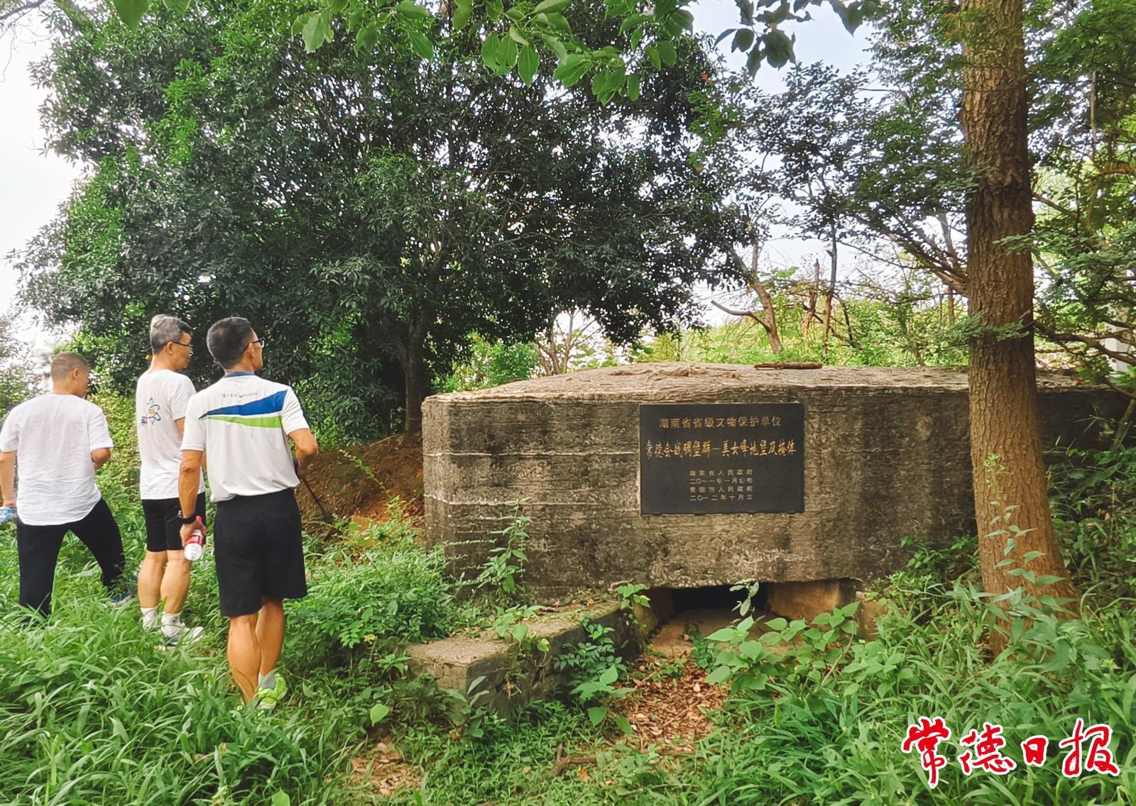 8月6日,行走在常德河洑山的林蔭道上,體感溫度比市中心城區低了不少,濃密的大樹遮擋了熾烈的陽光,枝葉間傳來或遠或近的鳥鳴和蟬鳴,因天熱而煩悶的心立即安靜下來。那些與我們擦肩而過的人們,那些時常往來于此的人們,是否知道這清幽靜謐的公園80多年前曾經槍林彈雨、血肉橫飛?美女峰地堡靜臥在綠樹之下、青草之間,地堡上銘刻的文字其實是一段慘烈的歷史。