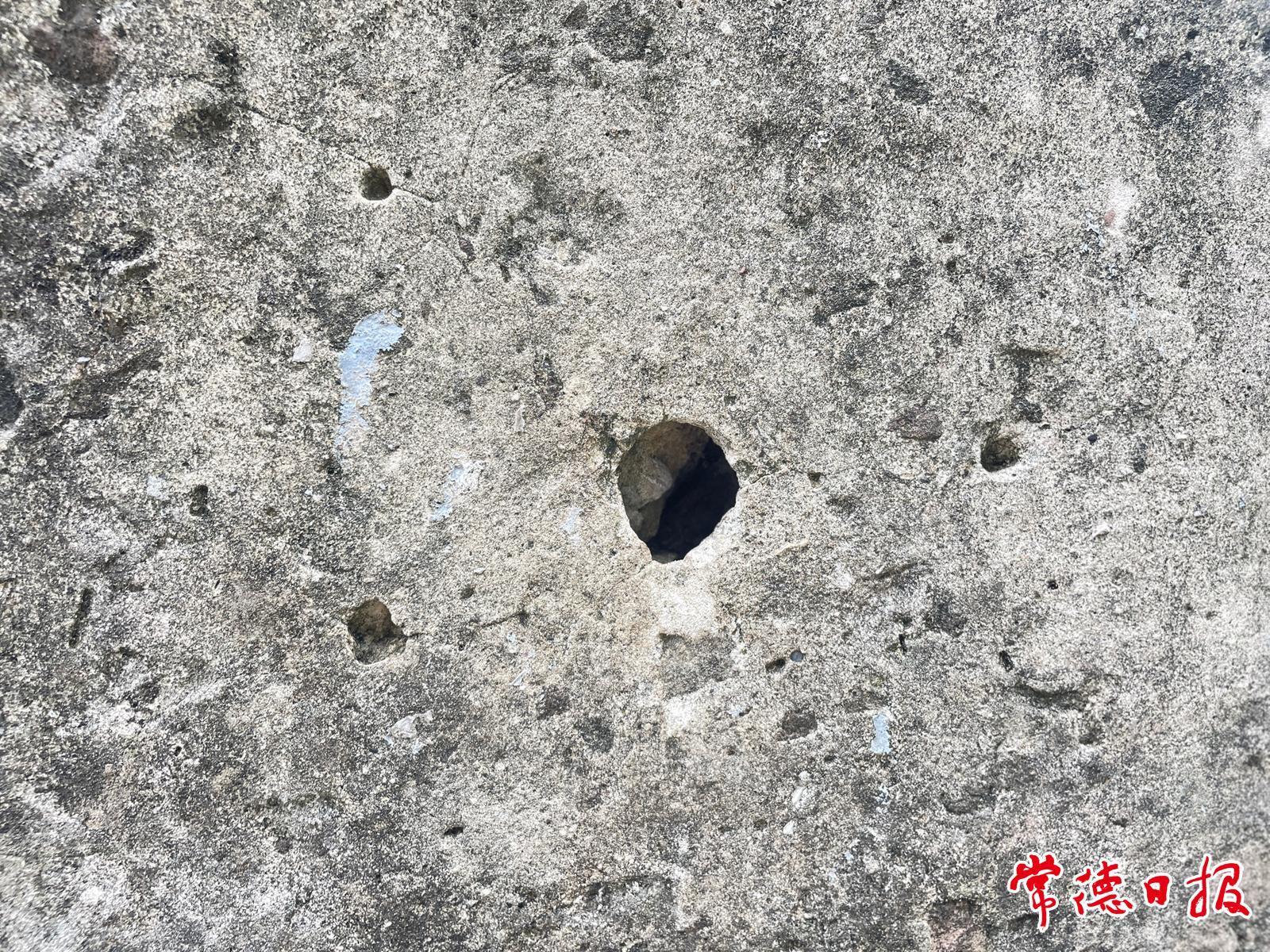 巖包碉堡全稱為常德東郊巖包抗日碉堡,屬于常德會戰碉堡群中的一處。1943年的常德會戰中,國民革命軍第74軍57師169團1營營長楊維鈞率300兵士,扼守常德城東新民橋、指路碑、皇木關、葉家崗、巖包一線,阻擊4000多日寇進攻東城門。巖包碉堡曾在陣地爭奪戰中5次易手,可見當時戰爭之慘烈。碉堡正面和側面有數個大小不等、深淺不一的彈孔,那是炮火留在碉堡身體上的傷痕,歷經80多年的風雨洗禮,仍然清晰可見。