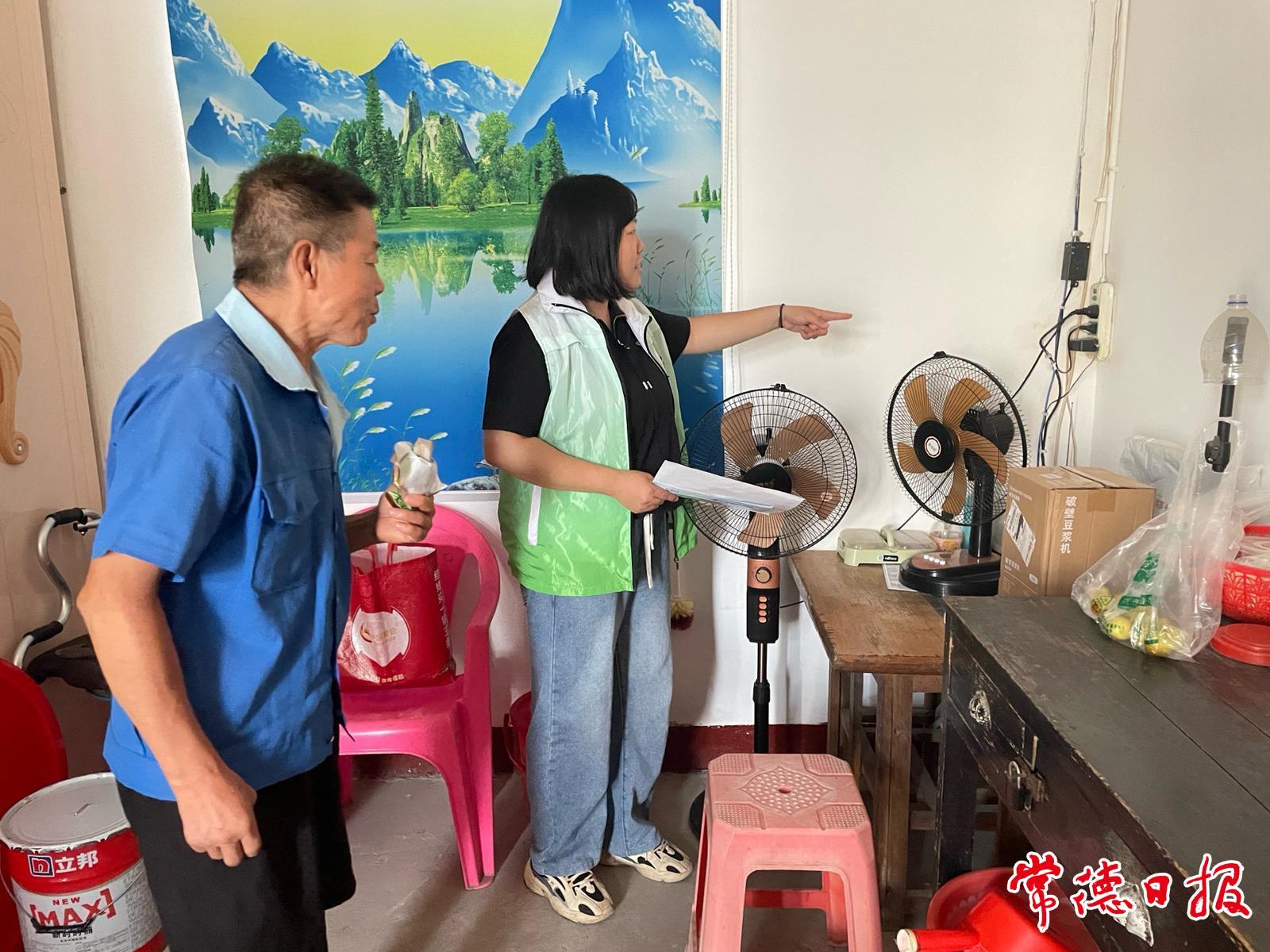 “姚爺爺,您看這個插線板插滿了電器,容易超負荷跳閘,甚至引發危險,平時要注意別同時用太多大功率電器。”社工一邊幫老人整理插線板,一邊結合宣傳手冊,講解安全用電常識,叮囑老人濕手不能碰插座、出門前要關掉電器電源、發現電線破損及時聯系村(社區)和片區的電工師傅。