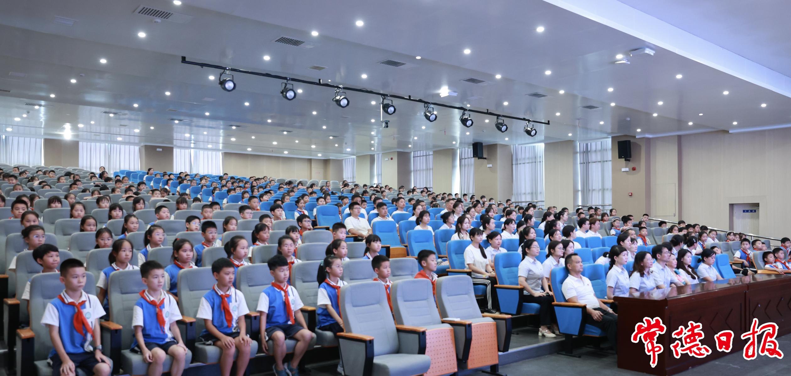 常德日報記者 黃云霞 通訊員 劉瑩 文/圖 9月3日上午,武陵區第五小學組織全體師生集中收看紀念中國人民抗日戰爭暨世界反法西斯戰爭勝利80周年大會閱兵活動現場直播。
