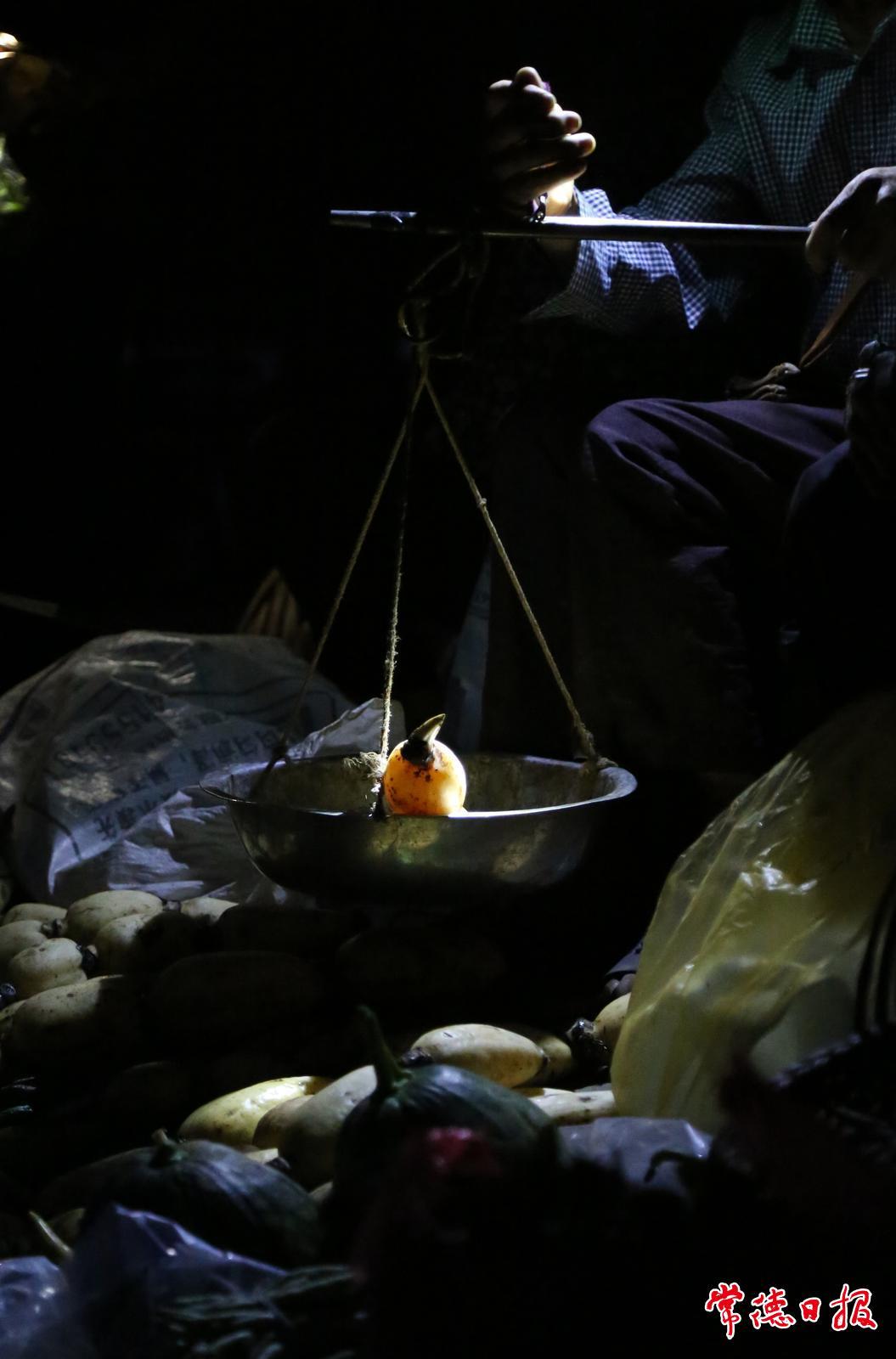 魚販停好三輪車,打開頭燈,一個勁兒地卸貨。附近菜農陸續趕到,有秩序地搶占攤位,嫻熟地擺放自產“珍品”,盼能賣個好價錢。