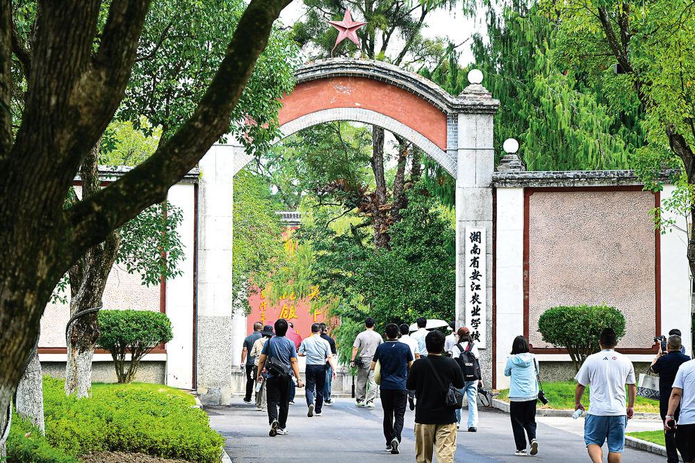 如今,步入安江農校紀念園,迎面可見巍然屹立的紅色校訓碑,上面刻著樸素的理想:“愿天下人都有飽飯吃”。近年來,不少有志于農業科研的年輕人來此瞻仰。生機盎然的試驗田里,仿佛仍能看見60余年前袁隆平年輕的身影。