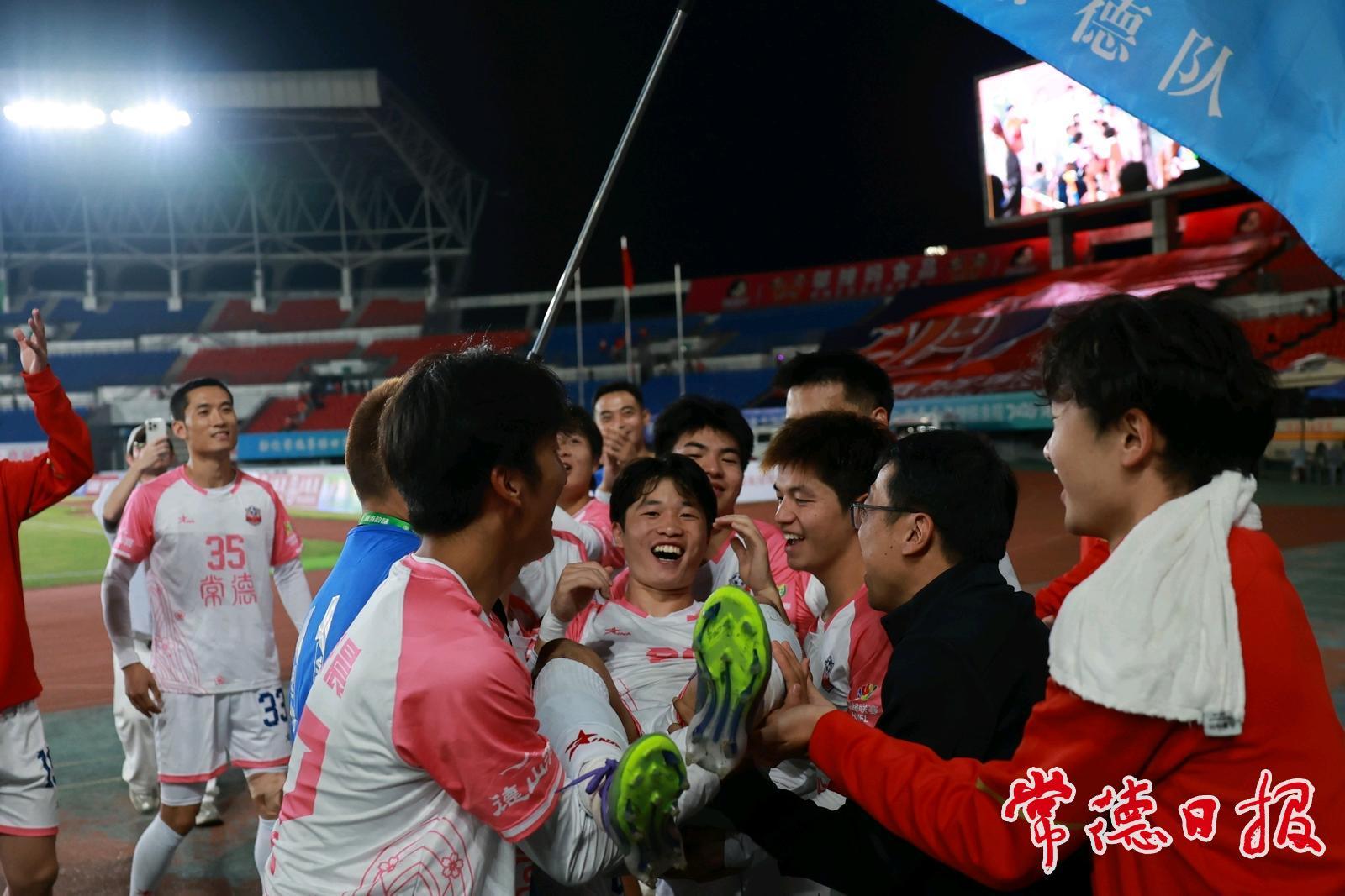 賽后,常德隊(duì)主教練趙旭東表示:“我和大家是一樣的心情,那就是振奮和驕傲。要感謝隊(duì)員們,他們展現(xiàn)出了常德隊(duì)的精氣神,把握住了為數(shù)不多的進(jìn)球機(jī)會(huì)。同時(shí)也要感謝婁底隊(duì),大家一起奉獻(xiàn)了一場精彩的比賽。”