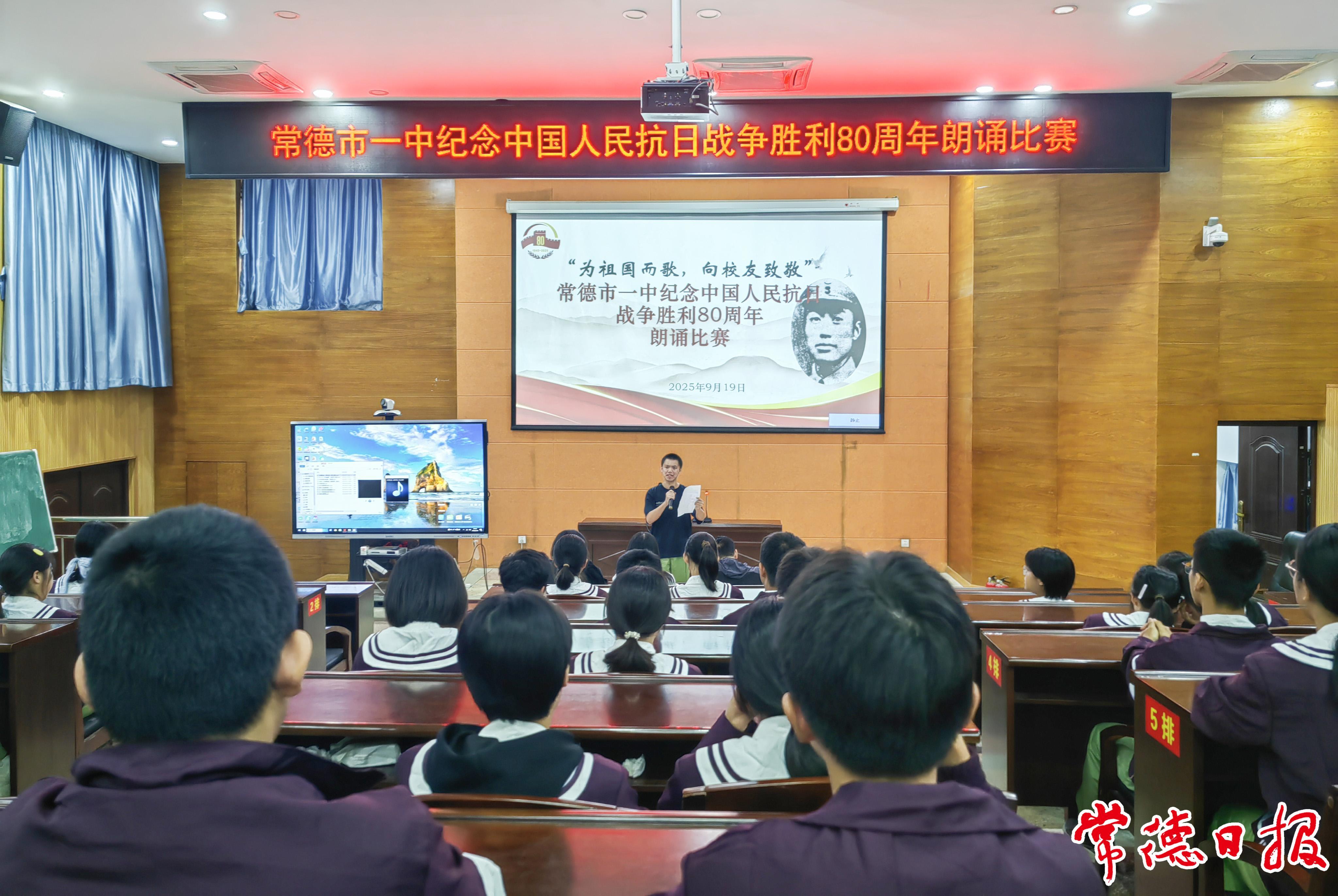常德日報記者 李龍 通訊員 胡宏保 胡昌云 文/圖 近日,常德市一中舉辦紀念中國人民抗日戰爭暨世界反法西斯戰爭勝利80周年朗誦比賽,全體高一年級學生積極參與。