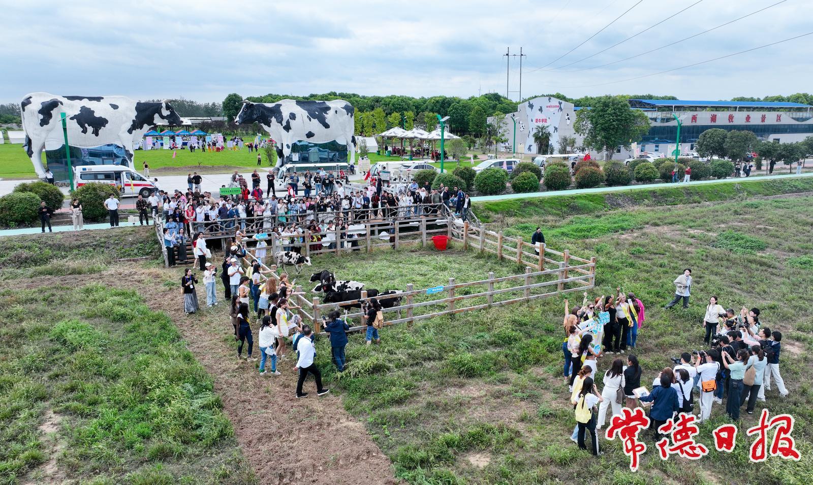 午后,佳麗們在牧業景區開啟生態體驗:品苜蓿草與牛奶制成的特色美食、乘觀光車游覽移民創業文化浮雕墻、登船錄制互動視頻;大賽組委會特別舉行授牌儀式,為德人牧香授予“唯一指定奶品”牌匾,佳麗們走進紫花苜蓿田喂小奶牛、參與奶牛認養儀式。德人健康全奶宴上,佳麗嘗乳品、秀特色產品、學做牛奶饅頭;市集里,她們品鑒特色好物,草坪舞臺上大鼓、舞獅、二胡串燒等節目輪番上演。傍晚,佳麗打卡無動力水上樂園,留下歡樂身影。
