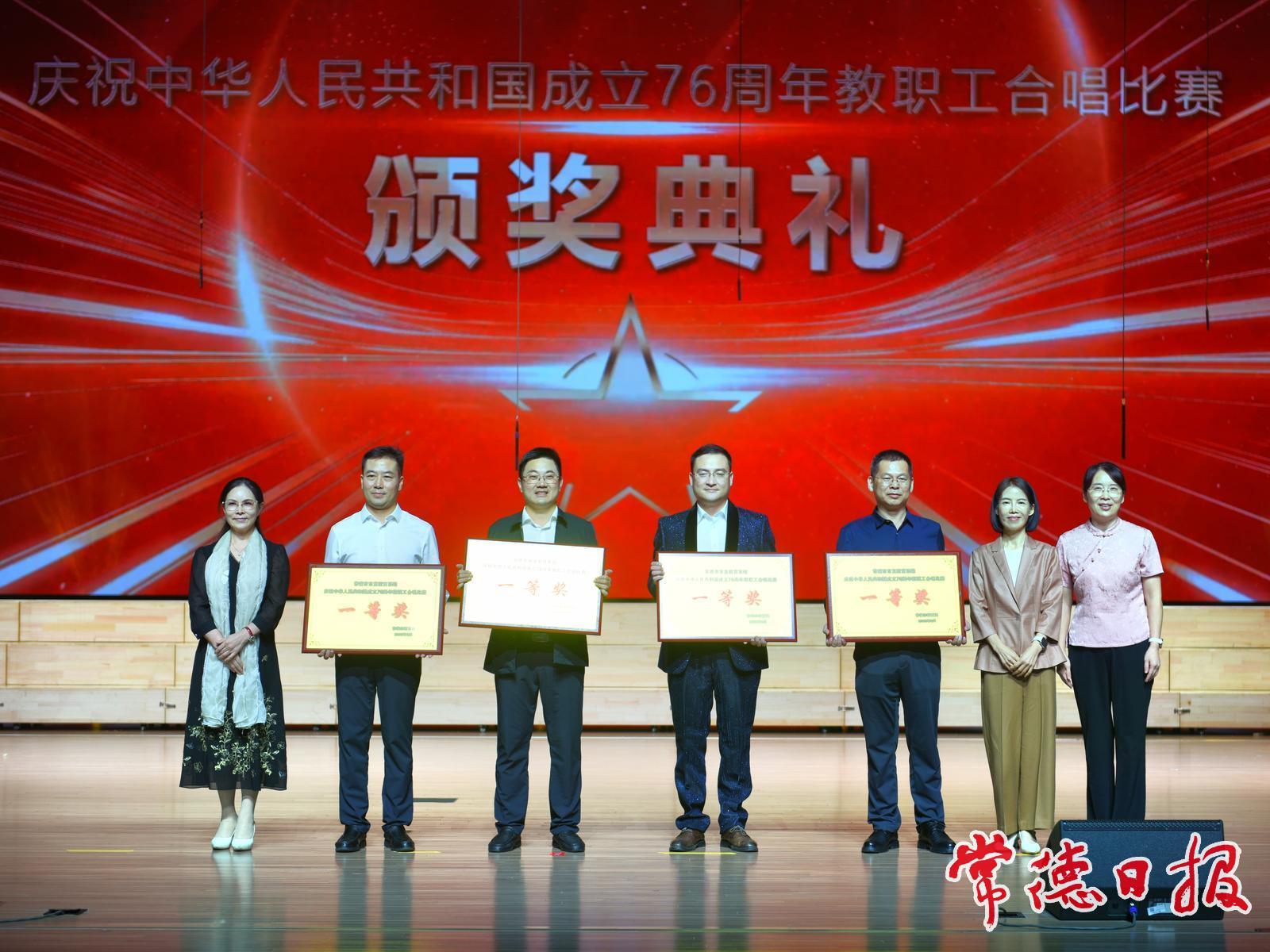 常德日?qǐng)?bào)記者 韓冬 通訊員 伍偉華 實(shí)習(xí)生 栗開(kāi)紀(jì) 文/圖 9月27日,常德市市直教育系統(tǒng)慶祝中華人民共和國(guó)成立76周年教職工合唱比賽在常德學(xué)院精彩館舉行。