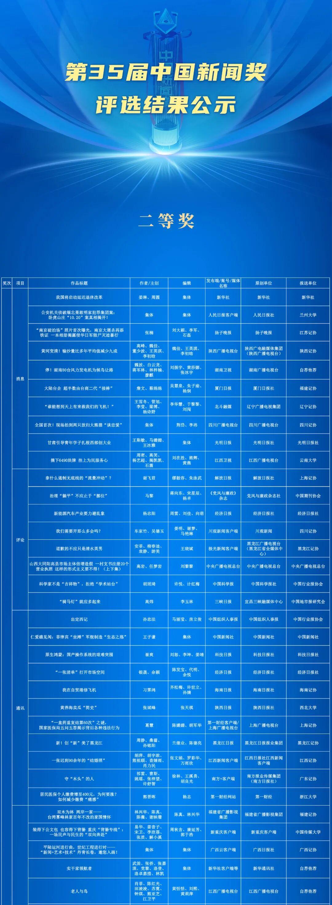 關于公示第35屆中國新聞獎評選結果的公告