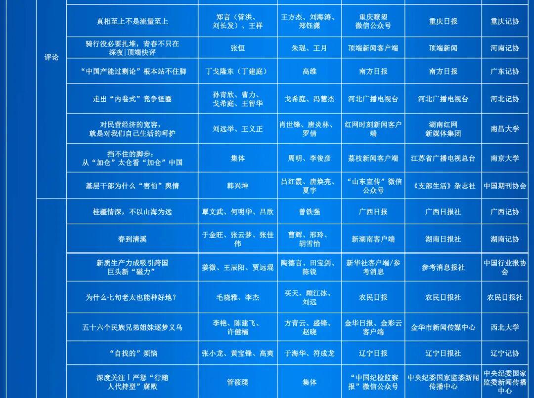 公示截止日期為2025年10月15日。在此期間,社會各界可通過電話、傳真、信函或電子郵件等方式發表意見。中國記協評獎辦公室將認真受理,按照評選辦法規定對有關舉報進行核查,并提出處理意見報評委會主任會議決定。
