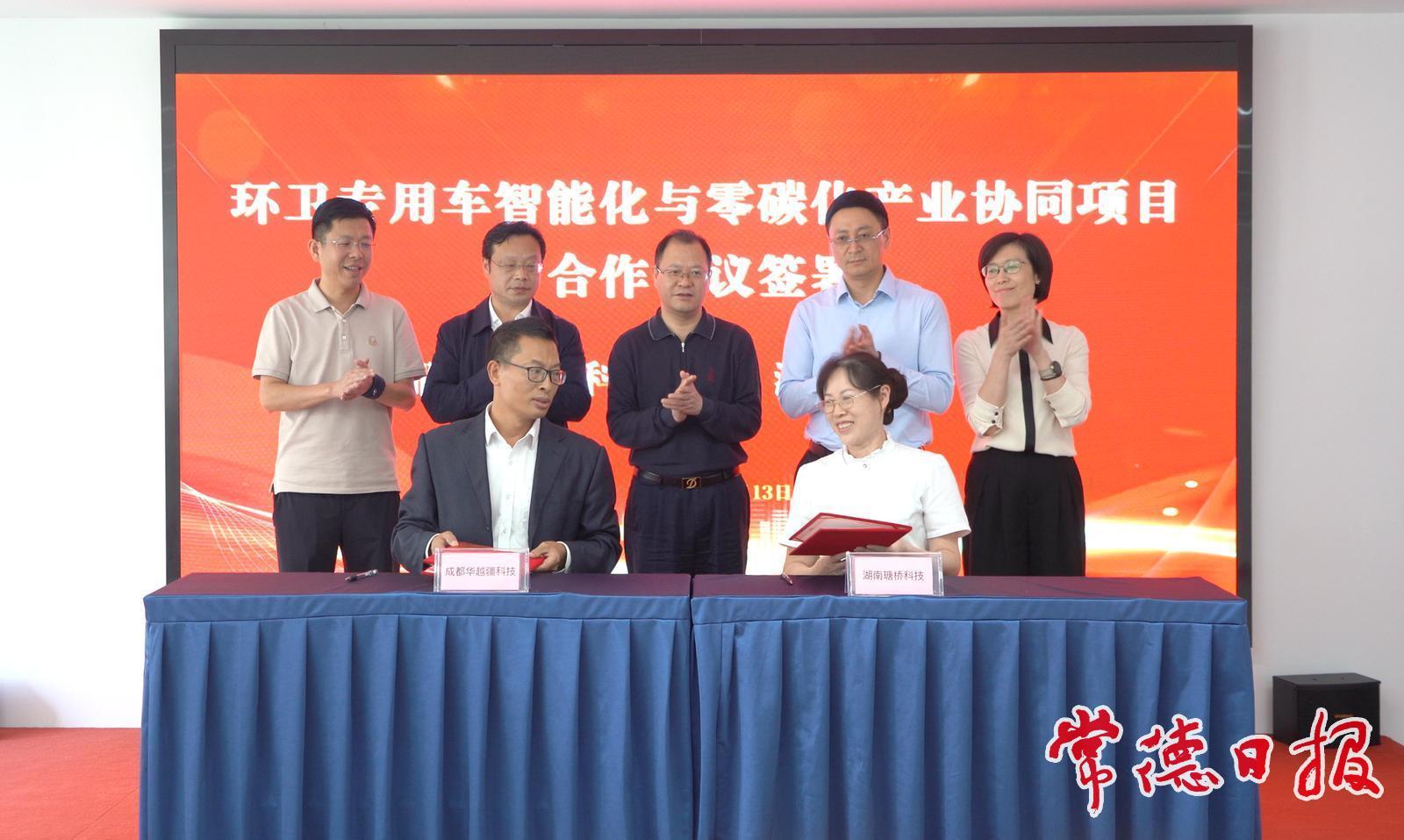 活動中,廣元市劍閣縣人民政府、金健米業、四川省湖南商會三方簽署合作協議;成都華越疆科技有限公司與湖南瑭橋科技發展有限公司簽訂《瑭橋科技環衛專用車智能化與零碳化產業協同項目合作協議》。