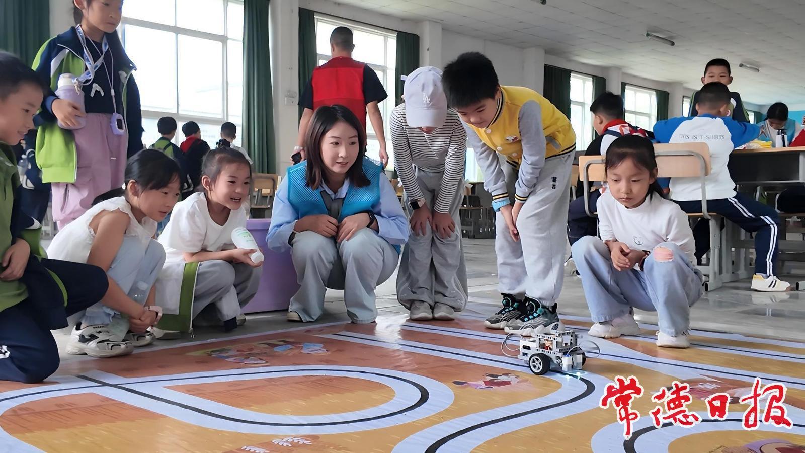 在隨后的“收稻游戲”中,學生們動手拼裝機器人,啟動編程程序,完成收取稻谷模型的任務。“運谷游戲”則讓孩子們體驗了傳統農耕的艱辛,他們推著獨輪車,小心翼翼地運輸著稻谷。“這個車好難推啊,農民伯伯真不容易!”2306班學生胡齡予在努力保持平衡后由衷地感慨。