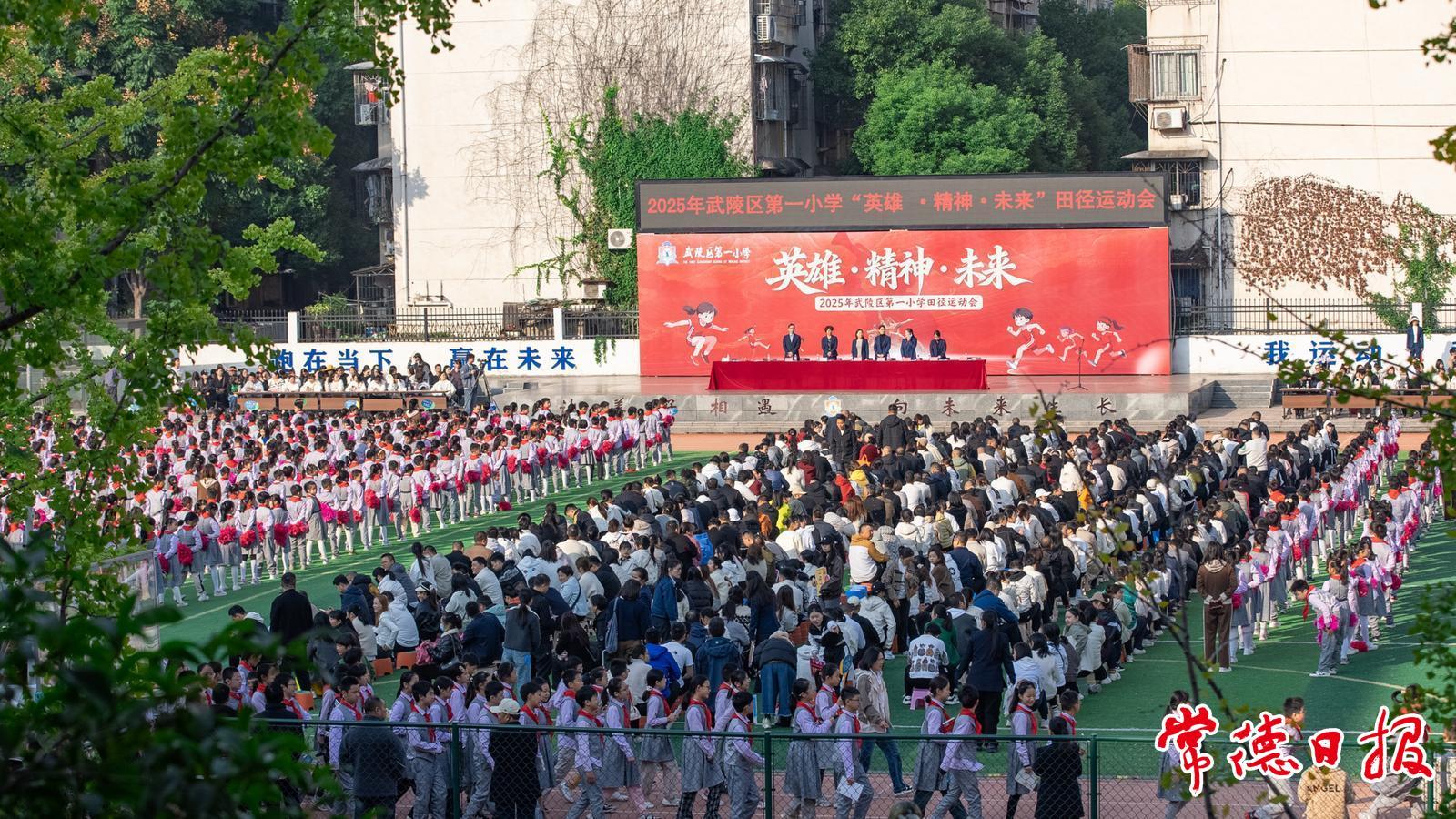 常德日報記者 黃云霞 通訊員 楊茜雯 羅露靈 文/圖 10月23日,武陵區(qū)第一小學操場上彩旗獵獵、鼓樂喧天,以“英雄·精神·未來”為主題的2025年秋季田徑運動會開幕式在此熱鬧舉行。3600余名師生與家長共聚于此,見證這場充滿活力的體育盛會。