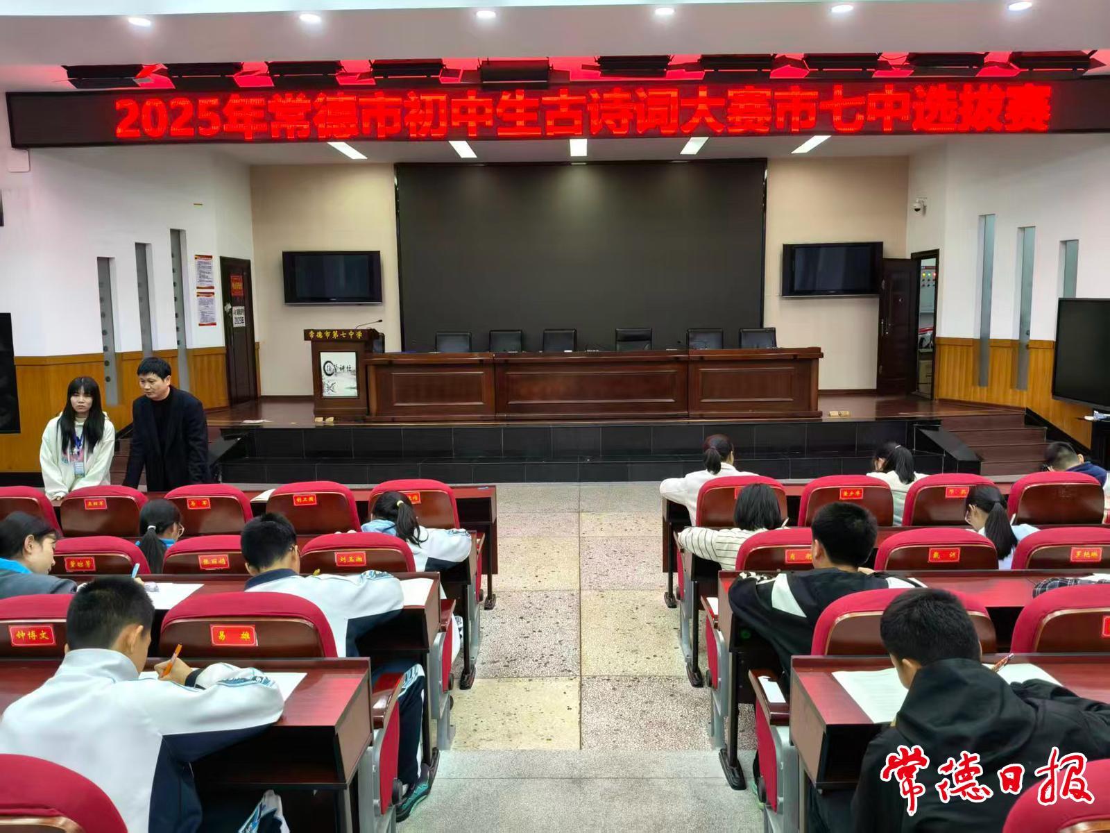 常德日報記者 黃云霞 通訊員 羅立波 文/圖 近日,70余名詩詞愛好者齊聚常德市七中常德市第二屆初中學生古詩詞大賽初賽選拔現場,盡顯他們扎實的詩詞積累和深厚的文化素養。