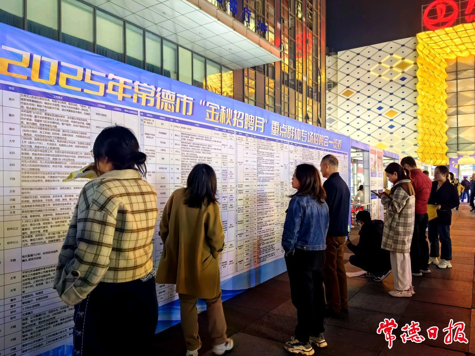 常德日?qǐng)?bào)記者 姚懿容 通訊員 易麗萍 文/圖 11月14日、15日晚,常德萬(wàn)達(dá)廣場(chǎng)門前人潮涌動(dòng),一場(chǎng)“招聘夜市”——2025年常德市“金秋招聘月”重點(diǎn)群體專場(chǎng)招聘會(huì)在此舉行。常德中聯(lián)重科液壓有限公司、常德遠(yuǎn)程醫(yī)療科技有限公司等40余家企業(yè)現(xiàn)場(chǎng)“擺攤”,提供涵蓋機(jī)械制造、醫(yī)療科技、光伏能源、無(wú)人機(jī)技術(shù)、金融保險(xiǎn)等熱門領(lǐng)域的3000多個(gè)就業(yè)崗位,滿足不同層次、不同專業(yè)背景求職者的多元化需求。
