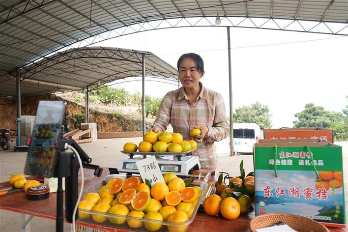 一開始,她緊張得手心冒汗。但隨著一場場實踐,她漸漸找到了節奏:晚上8時準時開播,用帶著鄉音的普通話介紹蜜橘的口感。鏡頭里,她時而摘下蜜橘當場剝開,展示晶瑩的果肉;時而帶著網友走遍果園,讓東江湖的湖光山色與掛滿枝頭的蜜橘同框。