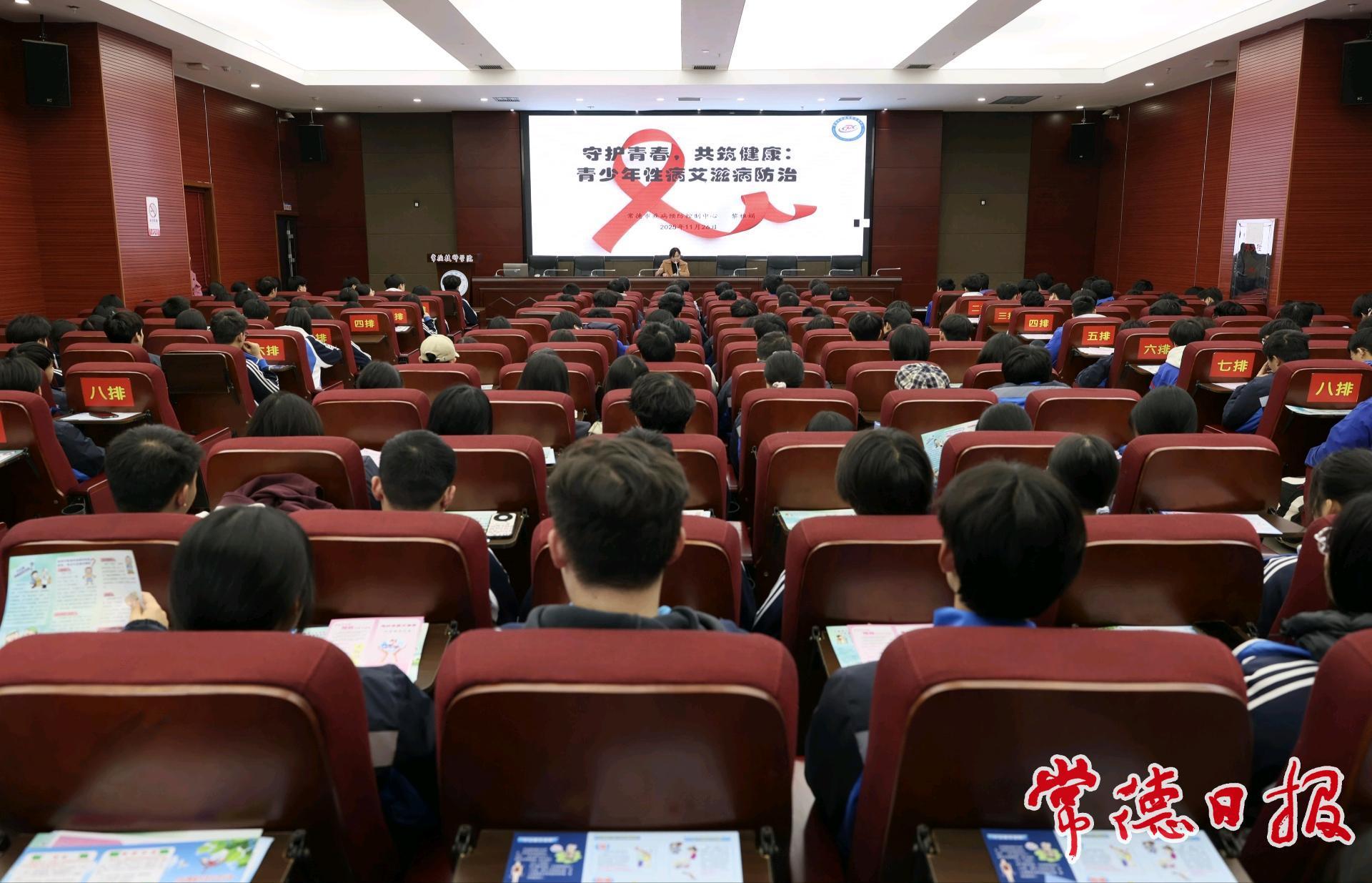 活動現場設置了形式多樣、內容豐富的環節。常德市疾控中心專業人士黎雅娟應邀作專題授課。她結合當前校園青少年艾滋病流行趨勢,系統講解了艾滋病的傳播途徑、科學預防方法以及檢測與治療的最新進展,并重點強調了“早發現、早干預”在防控中的關鍵作用。