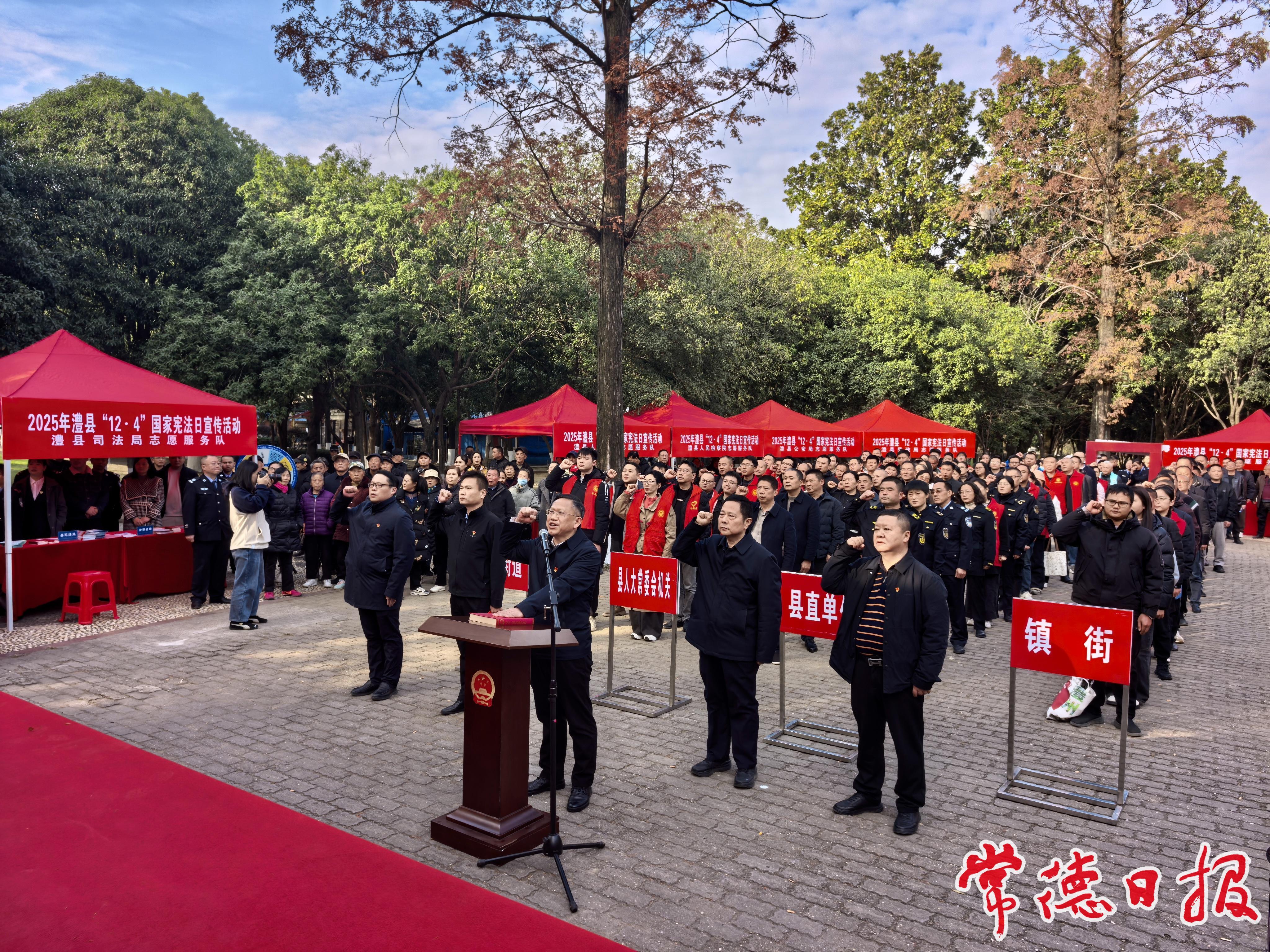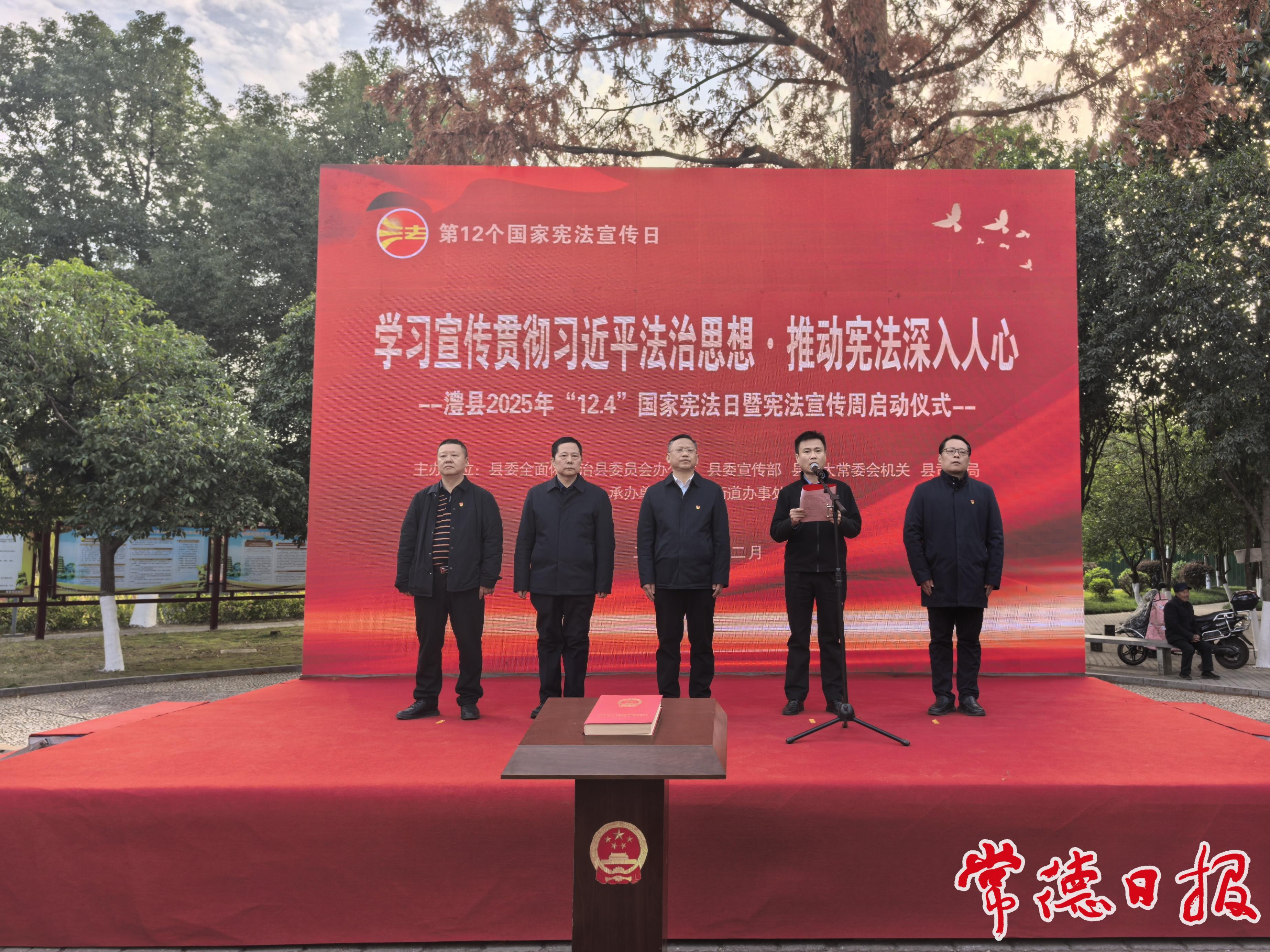 常德日報記者 楊晟 見習記者 趙婧 賀雅欣 實習生 張雅琴 通訊員 劉慧 文/圖 12月3日,澧縣2025年“12·4”國家憲法日暨全縣“憲法宣傳周”活動在縣法治文化公園啟動。本次活動以“學習宣傳貫徹習近平法治思想,推動憲法深入人心”為主題,標志著我縣憲法宣傳活動正式拉開帷幕。