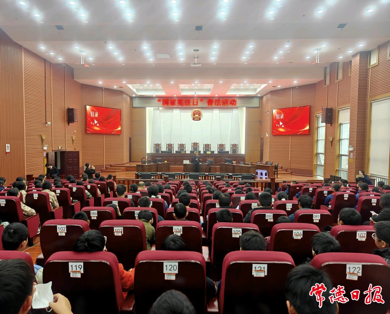常德日?qǐng)?bào)記者 江一舟 姚璇 文/圖 12月4日是國(guó)家憲法日,常德市二中、常德市十七中及武陵區(qū)旭輝東升小學(xué)的170余名師生走進(jìn)武陵區(qū)人民法院第一審判庭,旁聽(tīng)刑事案件庭審、參與普法互動(dòng),上了堂別開(kāi)生面的“沉浸式”憲法宣傳課。