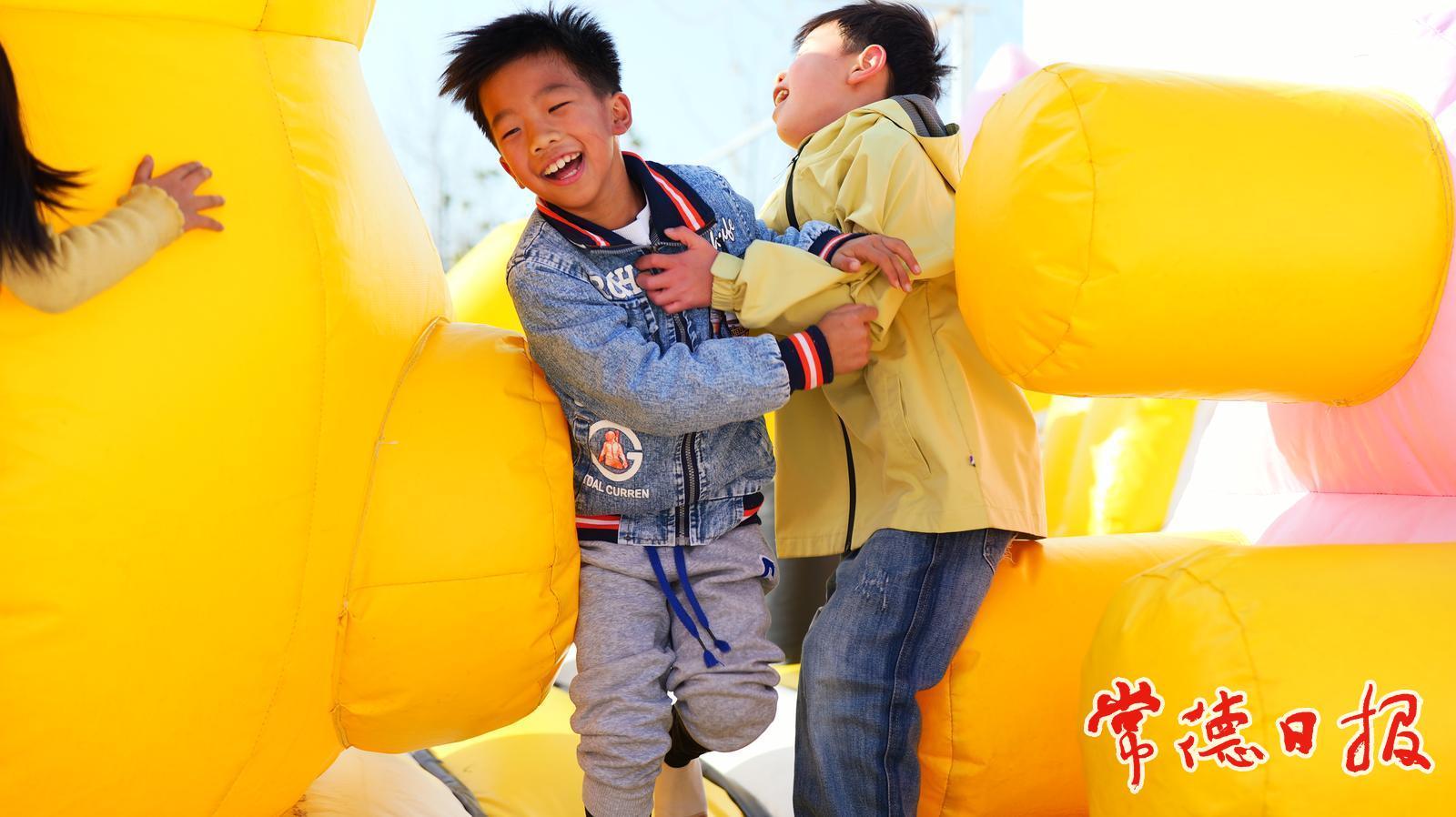 小朋友在充氣城堡玩耍