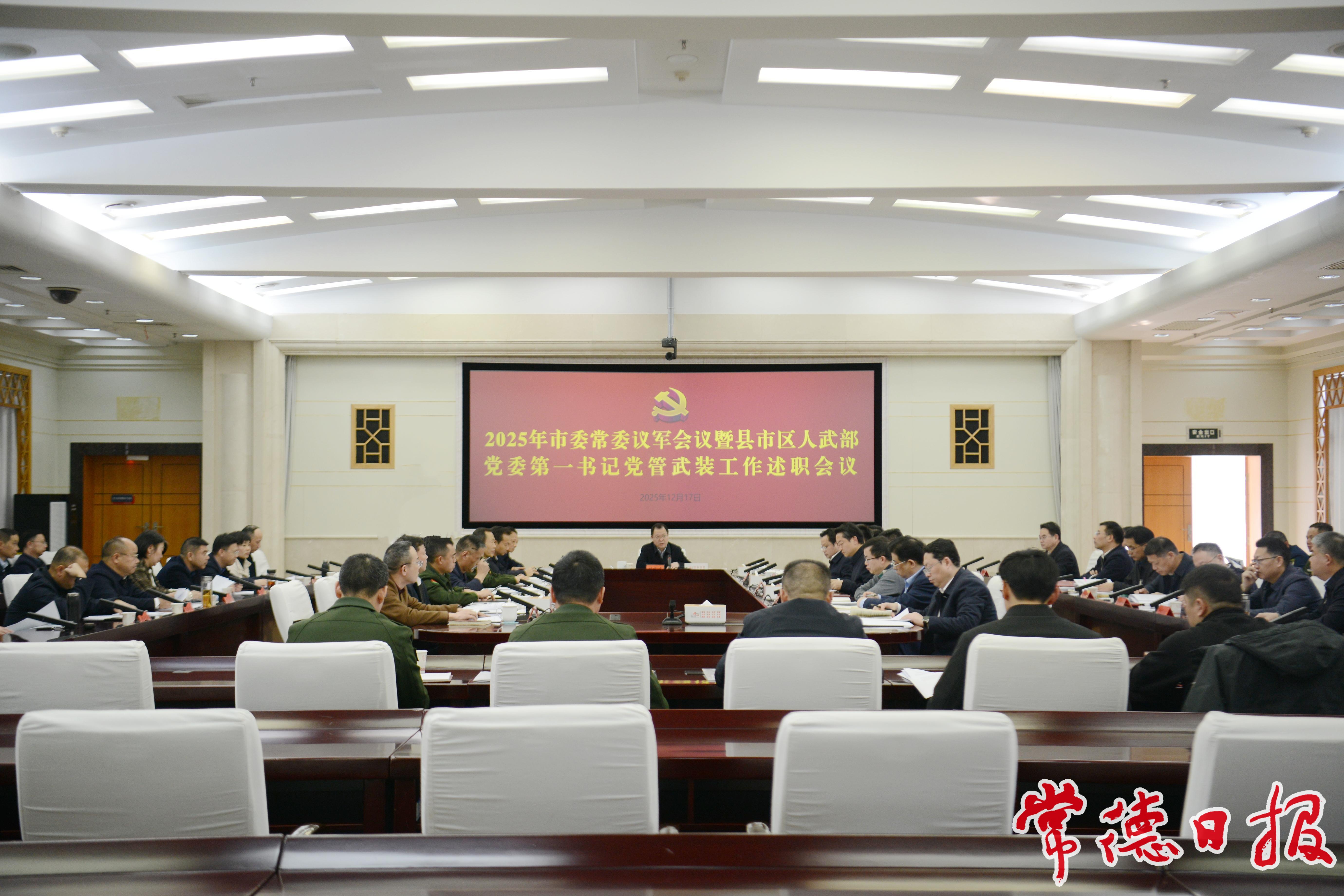 常德日報記者 羅希 通訊員 廖志勇 文/圖 12月17日,受市委書記、常德軍分區(qū)黨委第一書記羅毅君委托,市委副書記、市長、市國動委主任周振宇主持召開2025年市委常委議軍會議暨縣市區(qū)人武部黨委第一書記黨管武裝工作述職會議,傳達學習習近平總書記關(guān)于國防和軍隊建設重要論述,聽取有關(guān)情況匯報和縣市區(qū)黨管武裝工作書面述職,研究安排下階段工作。