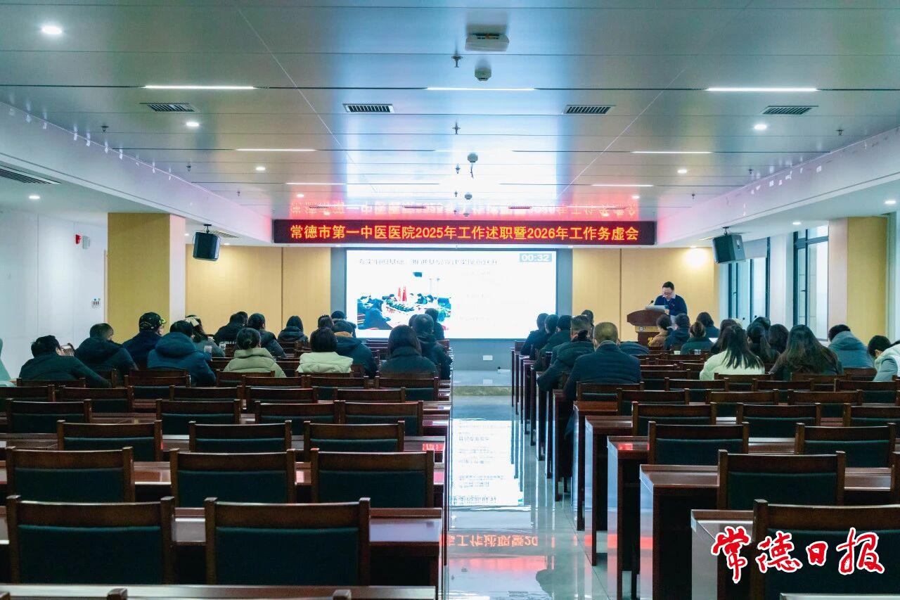 常德日報記者 王浪 通訊員 吳秀英 文/圖 1月20日上午,常德市第一中醫醫院召開2025年度工作述職暨2026年工作務虛會。醫院全體領導班子成員及各職能科室負責人參會,通過總結回顧、查擺問題、謀劃未來,共同明晰新一年的發展路徑。
