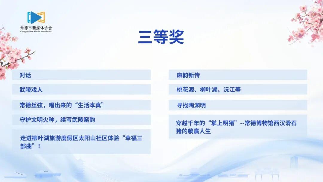 1月27日,“桃花源里 靈醒常德”網(wǎng)絡(luò)作品征集活動(dòng)獲獎(jiǎng)作品揭曉,共評(píng)選出56件獲獎(jiǎng)作品,其中一等獎(jiǎng)4件、二等獎(jiǎng)8件、三等獎(jiǎng)20件、優(yōu)秀獎(jiǎng)24件。