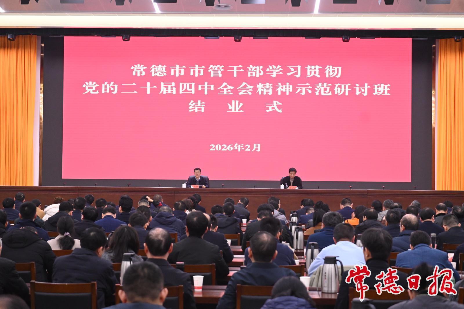 常德日報記者 粟鈺 李張念 文/圖 2月3日,常德市市管干部學習貫徹黨的二十屆四中全會精神示范研討班在市委黨校結業。市委常委、市委宣傳部部長黎軍鋒出席結業式并講話。