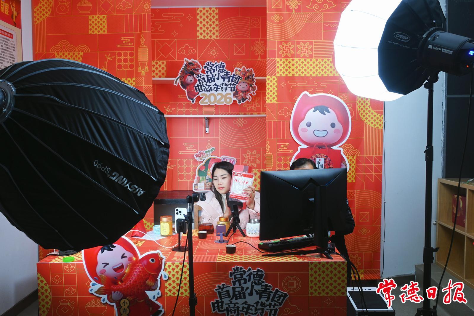 常德日報記者 粟鈺 丁時慧 文/圖 為助力鄉村振興、推廣常德特色產品、激活新春消費市場,2月8日至10日,由共青團常德市委、常德市青年企業家協會主辦,常德市商務局協辦的“2026常德小青團電商年貨節”在常德市青少年教育活動發展中心(青年電商主播基地)成功舉辦。活動通過抖音、微信視頻號等平臺,進行了為期3天的全天直播。