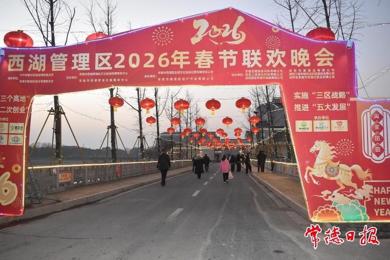 循著喧騰的人聲,踩著長串紅燈籠投下的暖光,我踏入西湖管理區工人文化宮。清冷的夜風被攔在門外,大廳內漫開的,是揉進了洞庭水汽的年味,既醇厚,又妥帖。一張張或熟悉或陌生的面孔,晃動在光影里,有爽朗干練的企業家,有謙和有禮的干部,有話語質樸的村支書,也有笑容自帶泥土氣的鄉民——2月11日的這個夜晚,男女老少400余人歡聚一堂,共賞一場屬于西湖人的春晚。