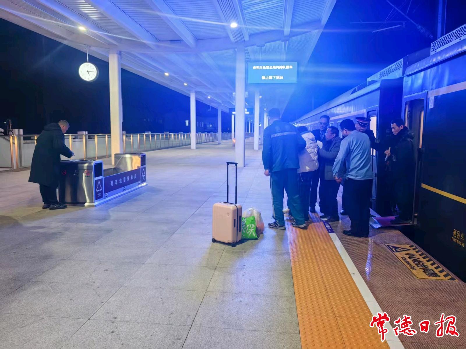 據了解,當日凌晨4時許,旅客阮女士因高血壓突發出現嘔吐癥狀,列車工作人員立即通過廣播尋醫,在未能找到隨行醫護人員后,阮女士提出下車就醫的需求,列車長隨即向調度部門申請在無客運計劃的常德站臨時停車,為旅客爭取救治時間。