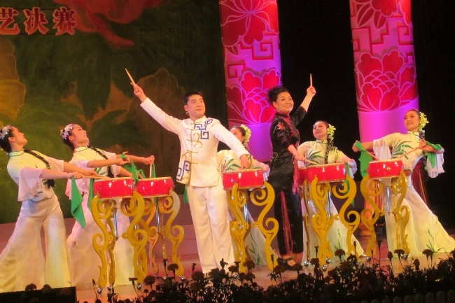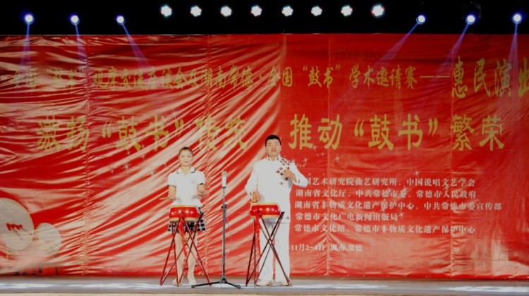澧縣等湘西北地區的傳統鼓盆歌表演,采用一面約半人高且斜扣于木盆中的大鼓伴奏,后改直徑一尺的普通大鼓。鼓盆歌是荊楚巫儺、祭祀文化的典型代表,藝術內涵豐富,表現為唱詞文學性極強,傳統的演出方式多在靈堂內進行,兼具悼亡祭靈的功用,且加入銅鑼、銅鈸伴奏。常用韻11個半,演出程序為:先擊三通鼓、揚號開唱、請神、安五方、勸亡、說唱正書、勸亡奠酒、送歌郎、說贊語、出魂。舞臺上的純藝術表演則直接唱敘節目內容。唱詞押韻,多一韻到底,后來有所變動;句式結構在清朝前期為五字句,清嘉慶年間,落第秀才蘇金福改為七字句;上世紀七十年代在澧縣文化館的主導下,引入多字句式,把口傳變為文本傳,演唱改說唱,坐唱改站唱;演唱語言以“澧州官話”為主,注重地域性和即時性,唱腔質樸,板式豐富、清晰。