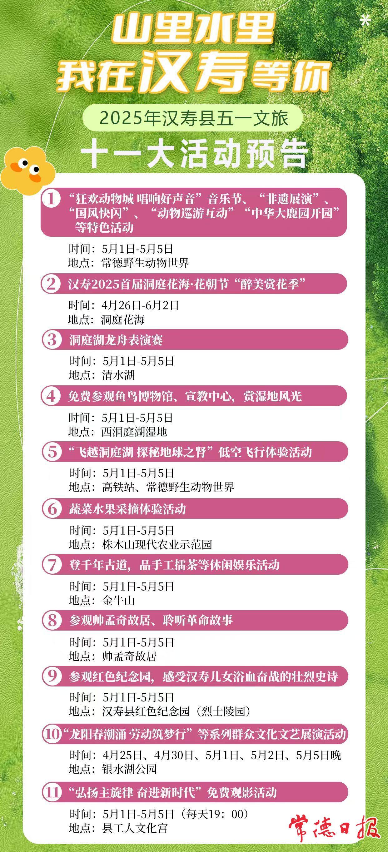 【附“五一”漢壽文旅系列活動時間、節目詳單。可點擊下載收藏哦!】