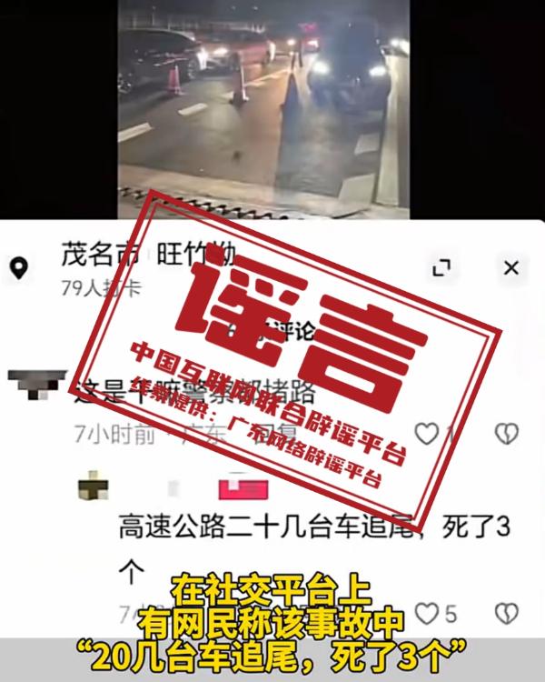 辟 謠 網傳“廣東茂名高速路多車連撞致三人死亡”系謠言